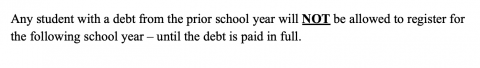 All families must register with FACTS Tuition Management. FACTS registration information will be provided separately. All missed payments will be assessed a $25 late fee the month that a payment is not made in full by the due date. If a second payment is also not paid by the due date, parent(s) will be asked to meet with the school to discuss financial arrangements and/or withdrawal of their students. Any student with a debt from the prior school year will NOT be allowed to register for the following school year – until the debt is paid in full.